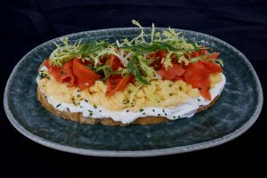 SCRAMBLED EGGS WITH SALMON ON SOURDOUGH